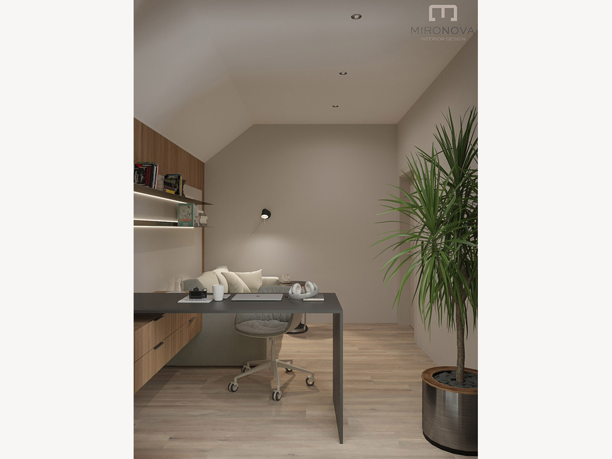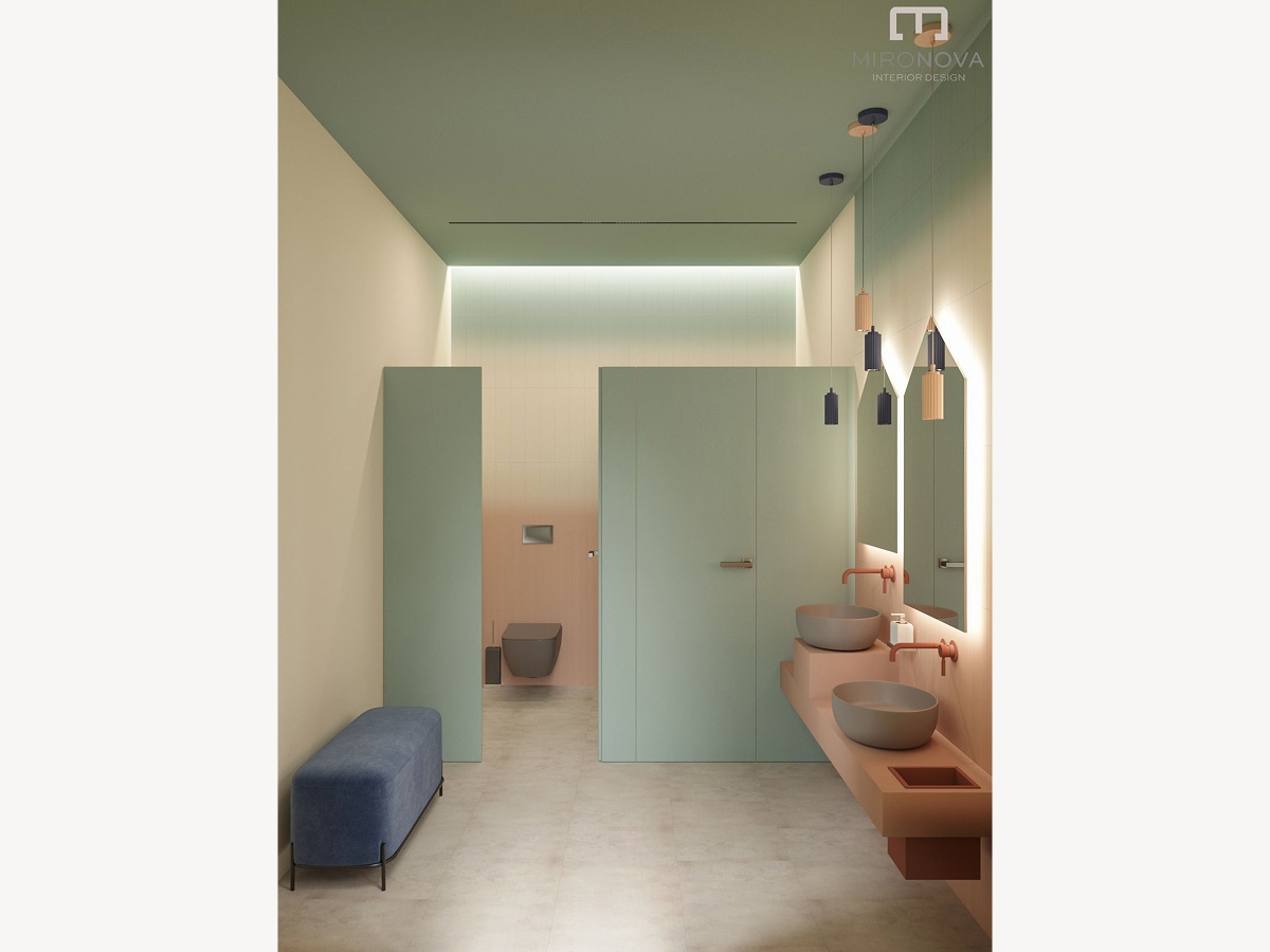 Die Farbpsychologie der Wände soll sowohl Behaglichkeit und Sicherheit ausstrahlen, wie auch Konzentration fördern. Durch die Fokussierung der Farbgestaltung auf die Wände wird Ruhe und Harmonie vermittelt