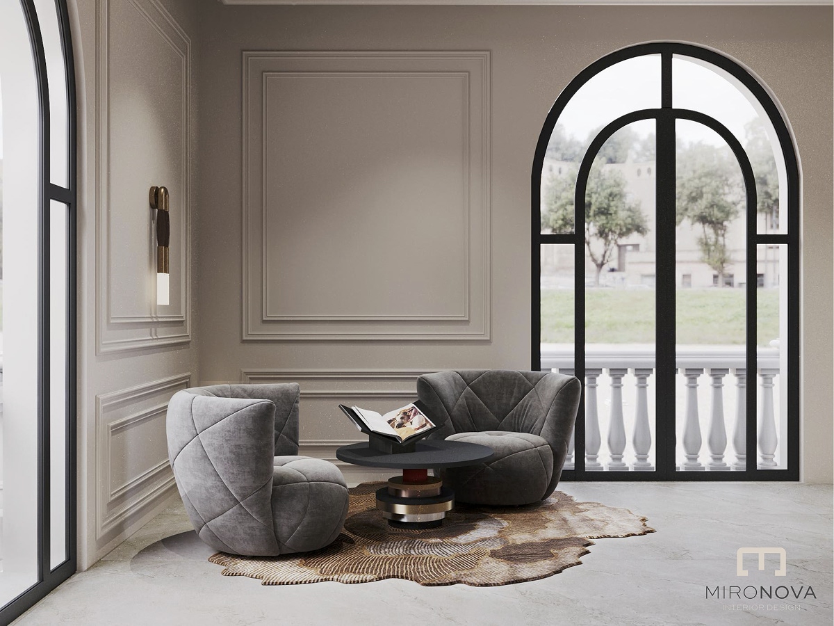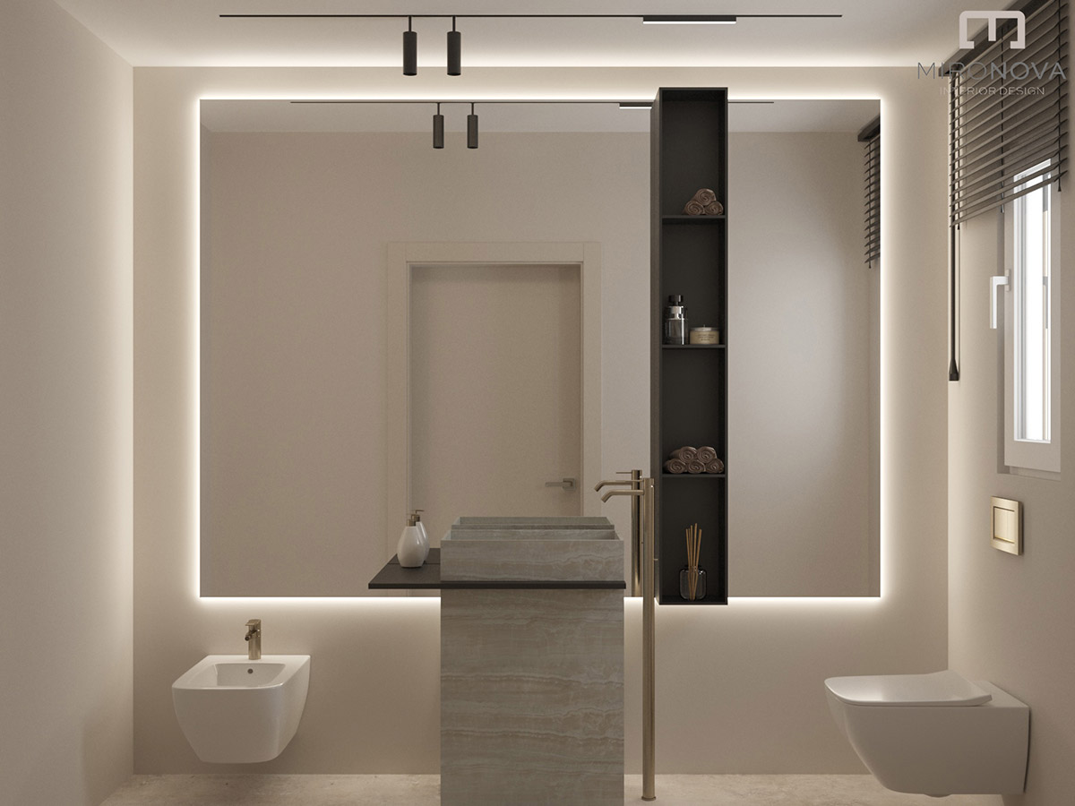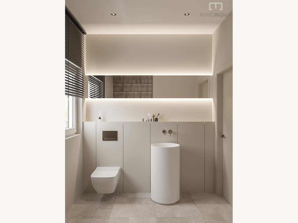 Das gesamte Farbkonzept in dem Einfamilienhaus orientiert sich an verschiedene Grau- und Beigetönen, die einen wunderbaren Kontrast zwischen hell und dunkel ergeben.