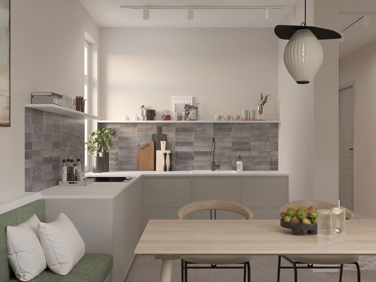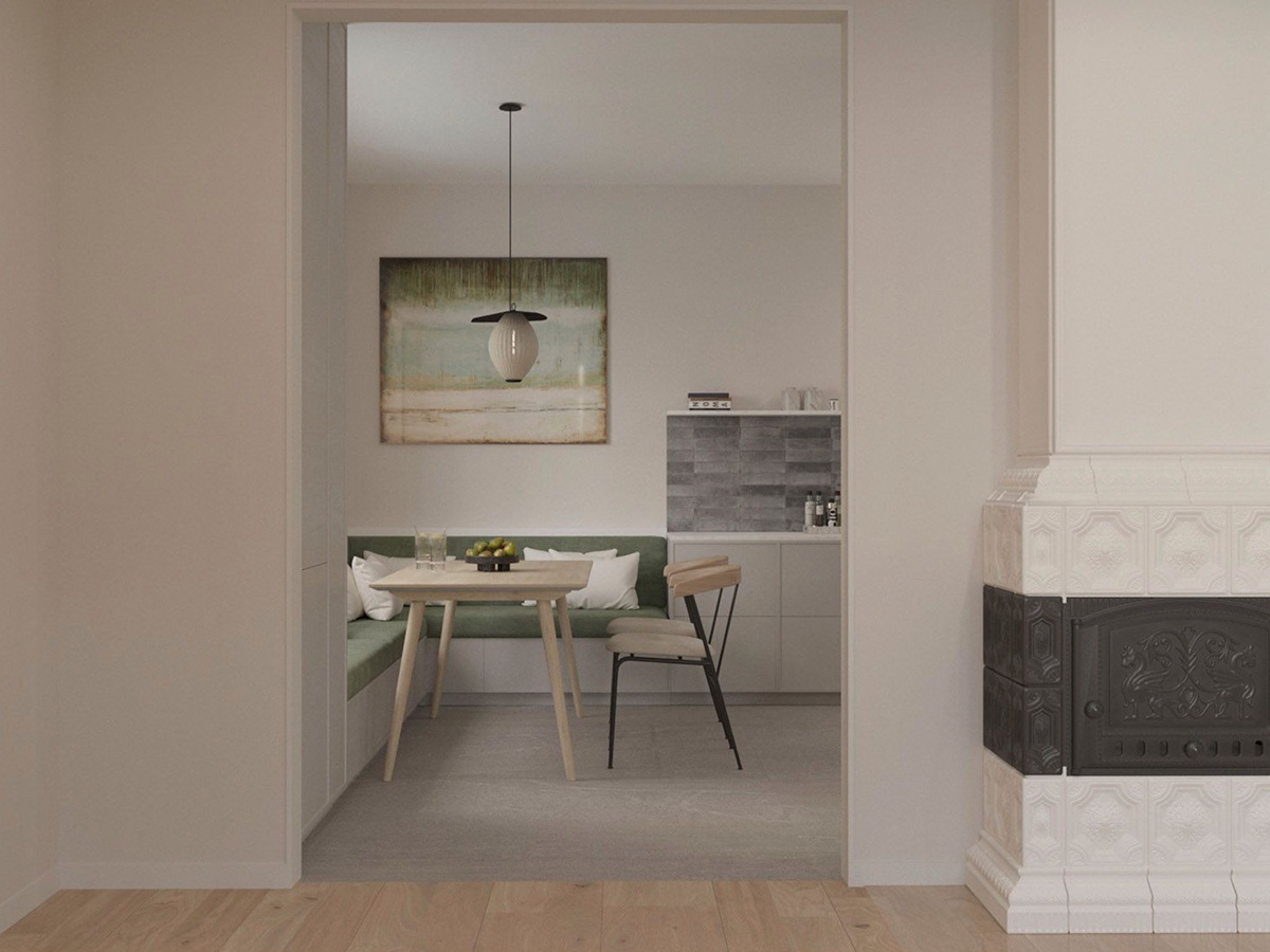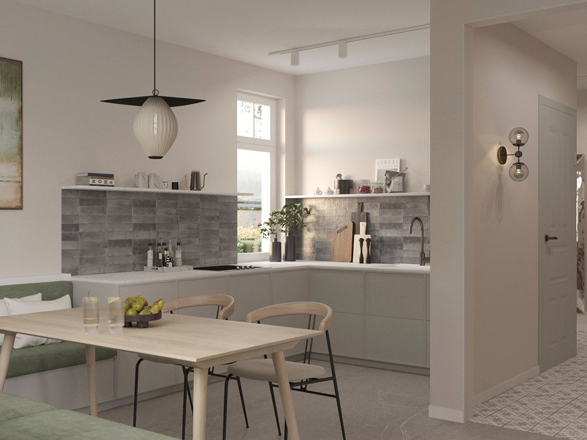 Das Einfamilienhaus in Hamburg ist 150m2 groß und erhielt eine Rund-um-Erneuerung im Modern Country Style. Der offene Durchgang von der Küche zum Wohnzimmer lockert das Design auf und schafft eine loftartige Atmosphäre mit hellen Farbtönen und viel Licht. Die grüne Küchensitzbank und die grünen Details im Wohnzimmer verbinden das Interior-Design.